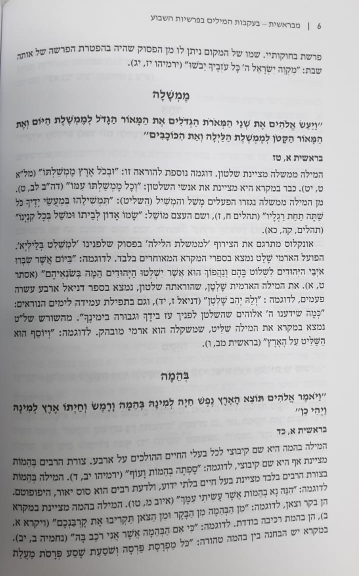 על הספר: הספר עוסק במילים נבחרות מפרשת השבוע. המחבר דן במילים מהיבטים שונים: שורש, בניין, צורת המילה, משמעות המילה, גלגוליה של המילה ועוד.