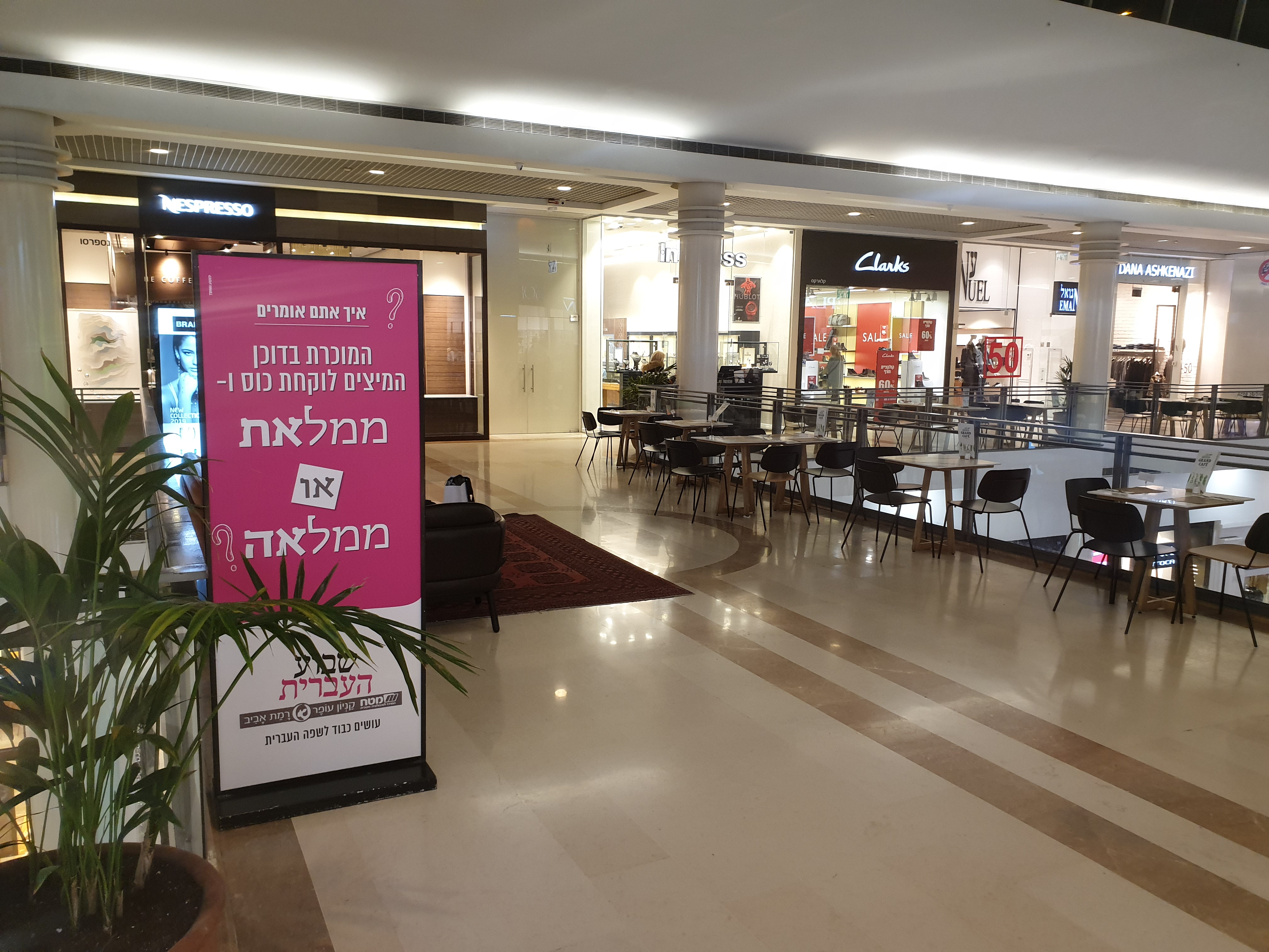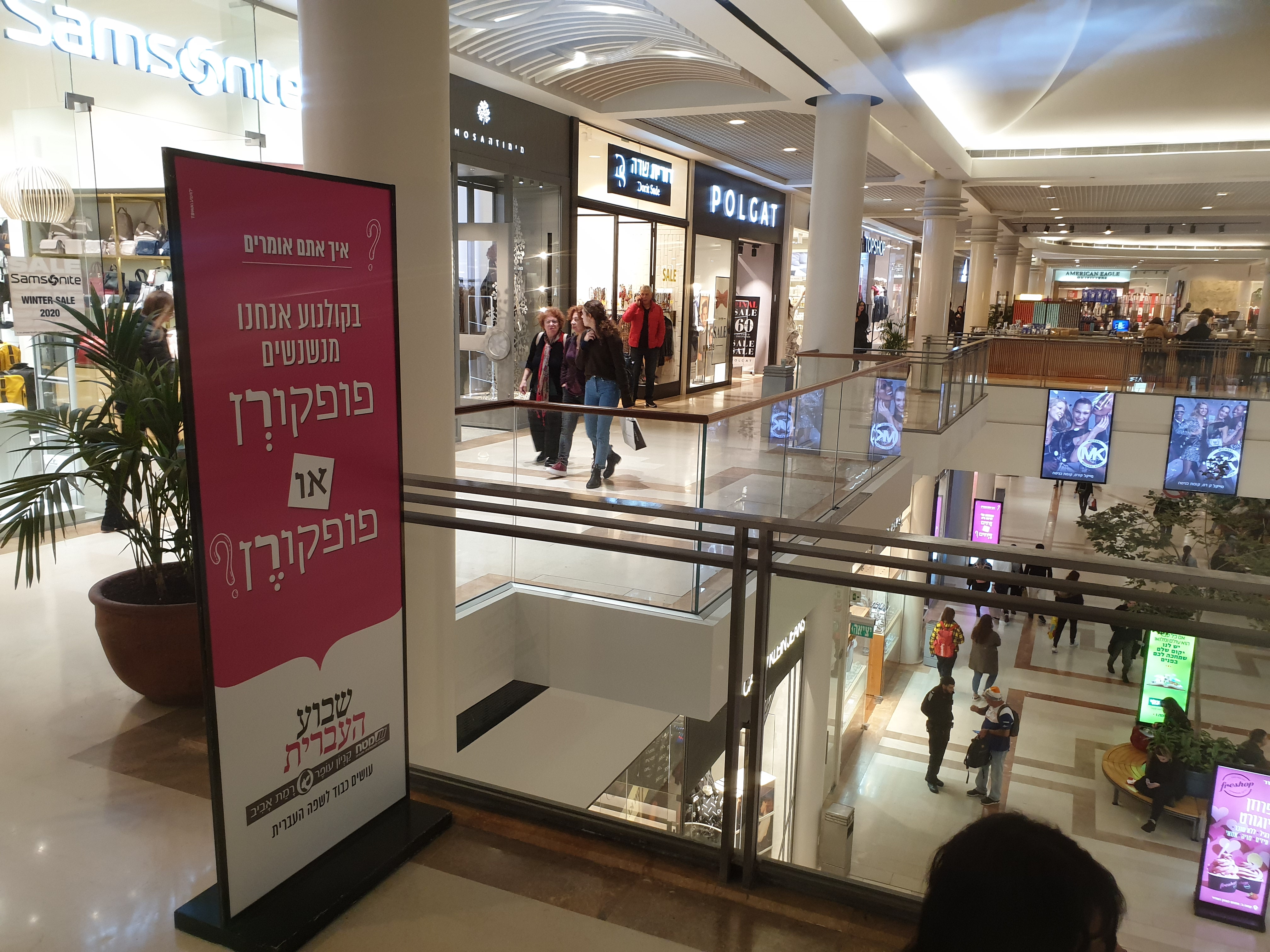 גלריית תמונות מקניוני עופר ברחבי הארץ – מודעות שבוע העברית הפזורות ברחבי הקניונים השונים.