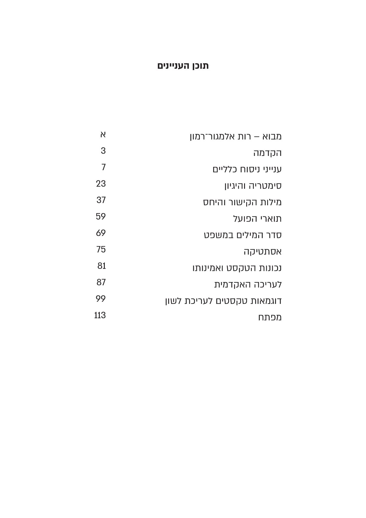 הספר כולל מבוא מאת רות אלמגור רמון, ובסוף הספר יש מפתח כללי, ובו אפשר למצוא דיונים במילים ובתופעות מסוימות.