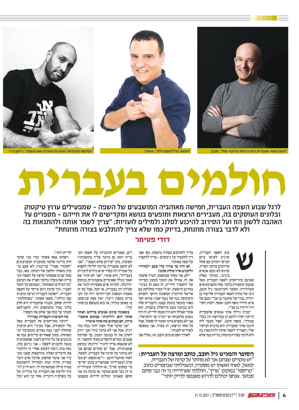 ראשי » עליי » 15 דקות של תהילה » חולמים בעברית