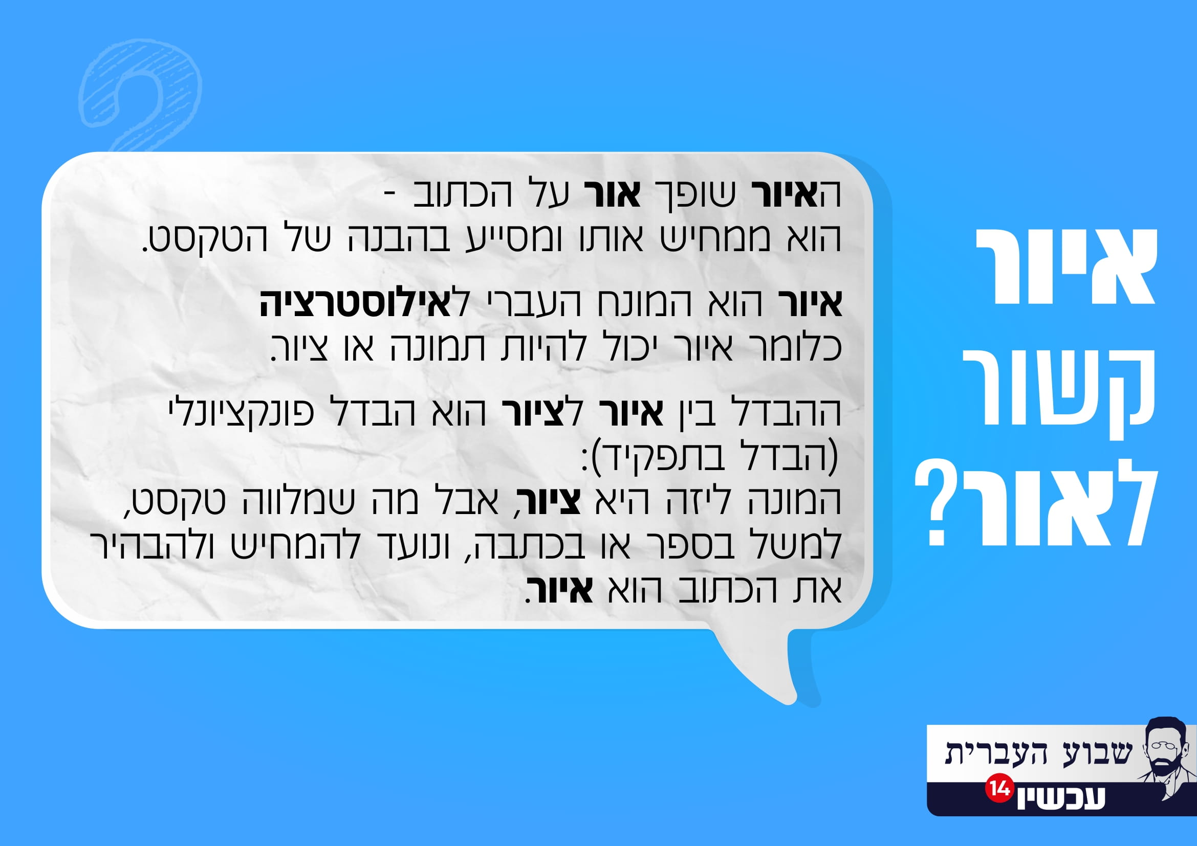 האיור שופך אור על הכתוב – הוא ממחיש אותו ומסייע בהבנה של הטקסט.