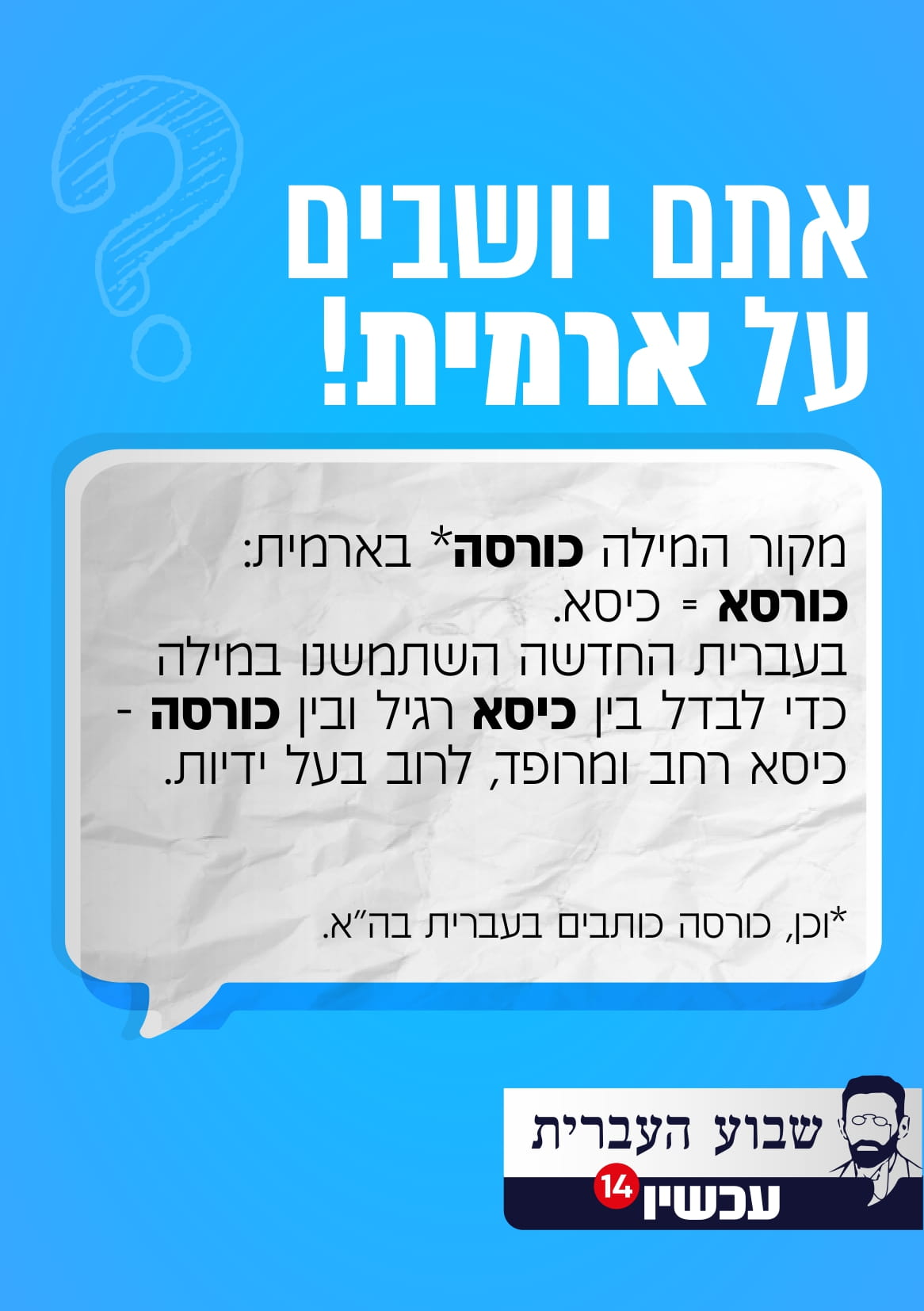 מקור המילה כורסה* בארמית: כורסא = כיסא.