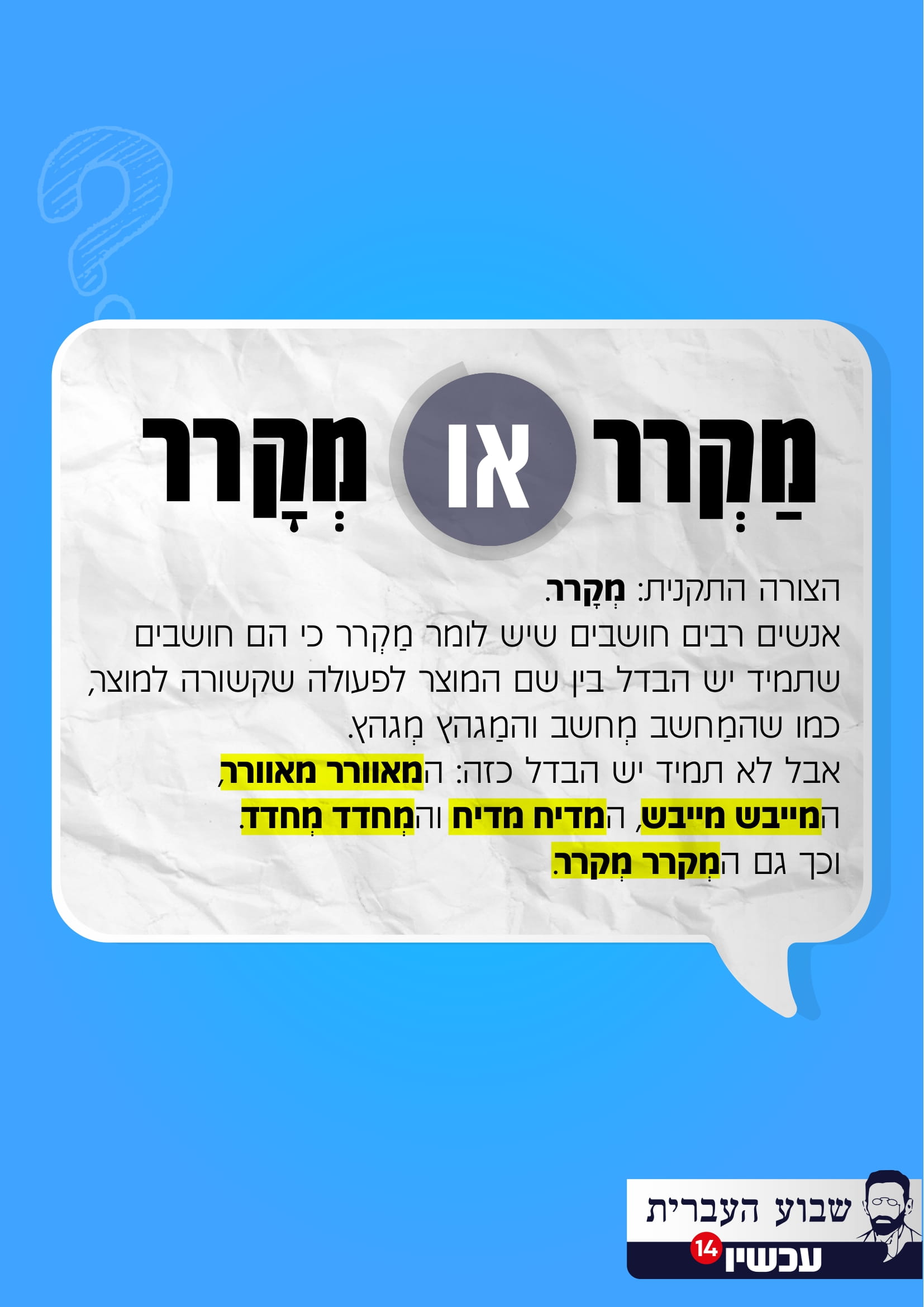 קבלו סימן לזכור 5 מילים בעברית שיש פער בין התֶקן ובין מה שרוב העולם אומר: