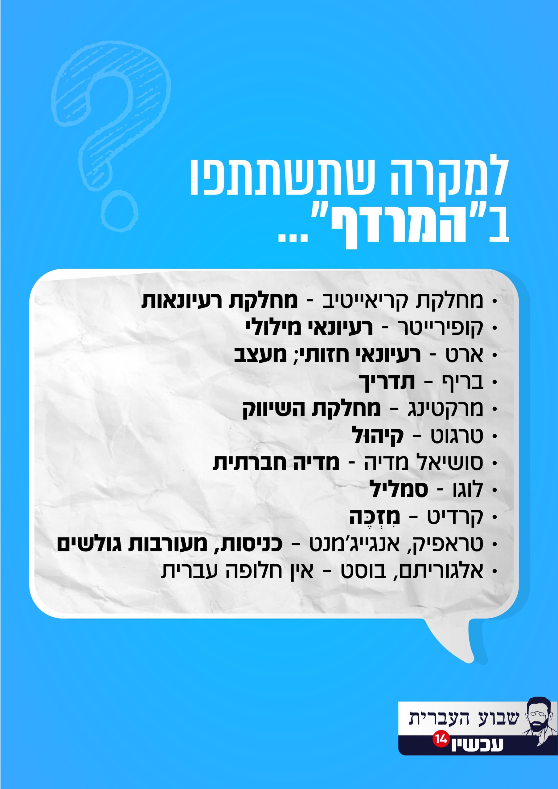 • ‍‍מחלקת קריאייטיב – מחלקת רעיונאות