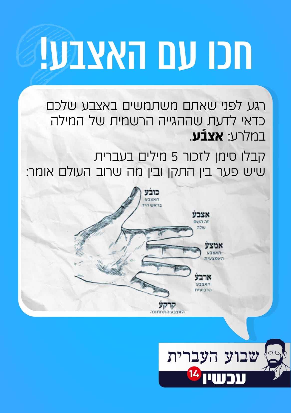 רגע לפני שאתם משתמשים באצבע שלכם, כדאי לדעת שההגייה הרשמית של המילה במלרע: אצב֫ע.