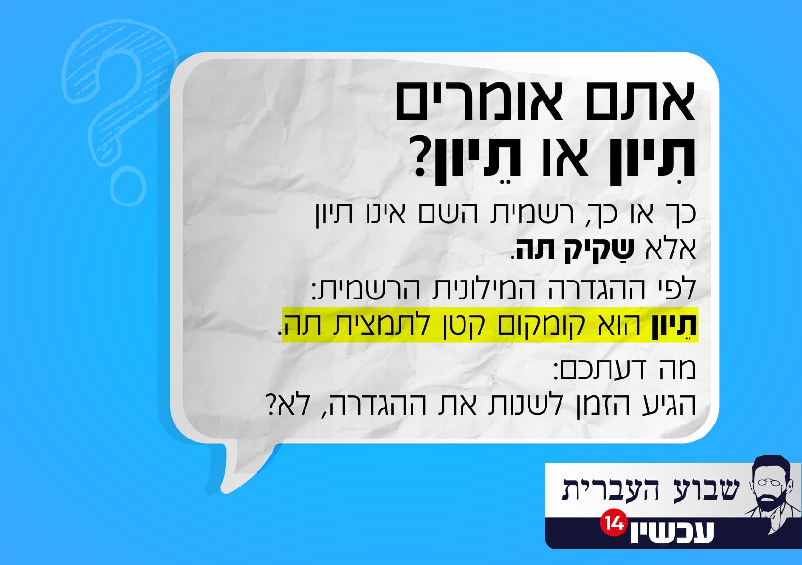 מה דעתכם: הגיע הזמן לשנות את ההגדרה, לא?